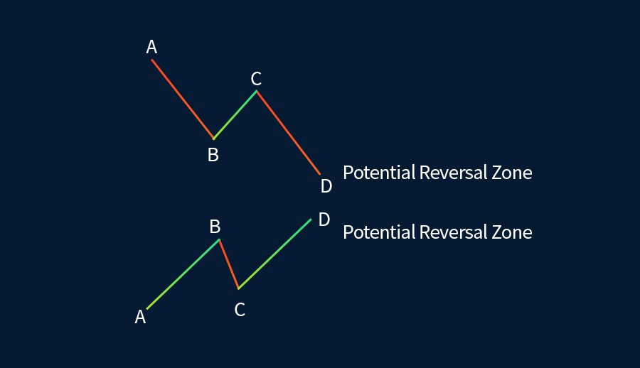 利用AB=CD形態進行交易涉及到建倉、鎖定潛在利潤以及如果市場反向波動以最小損失退出的規則。